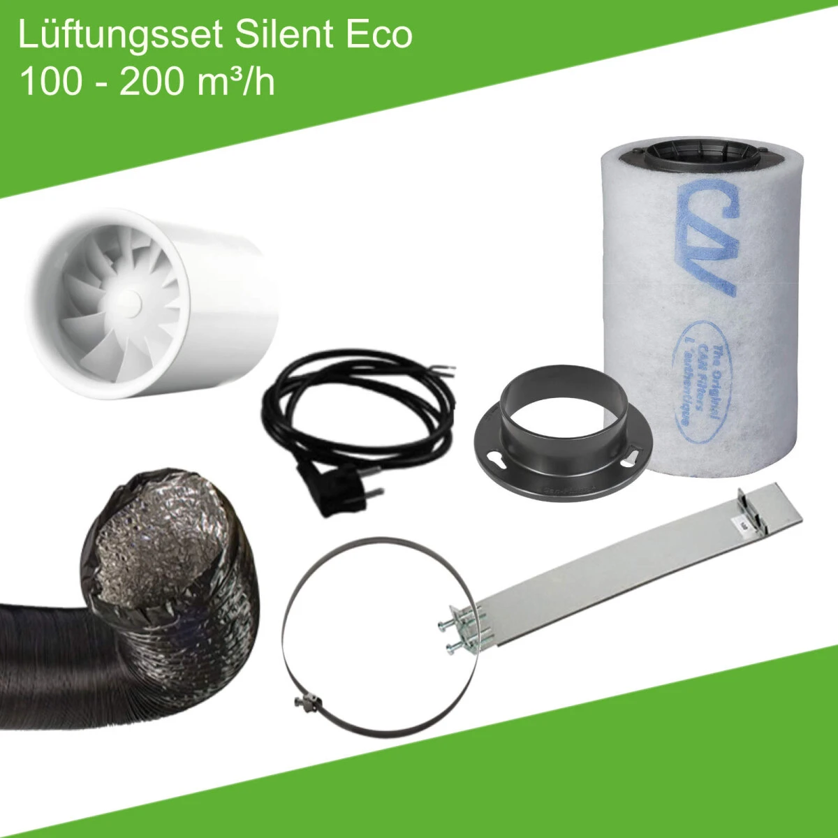 Unsere Lüftungskomplettsets Silent Axial Eco sind der Knüller für jeden Züchter und Grower der Wert auf einen leisen Betrieb und ein bestechendes Preis-Leistungsverhältnis legt. Diese Sets sind in zwei unterschiedlichen Produktgrößen, also mit 100 mm und mit 125 mm Rohrdurchmesser, erhältlich und passen in fast jede Growbox die eine Grundfläche von maximal 1,44 m² (120 cm x 120 cm) hat oder kleiner ist.