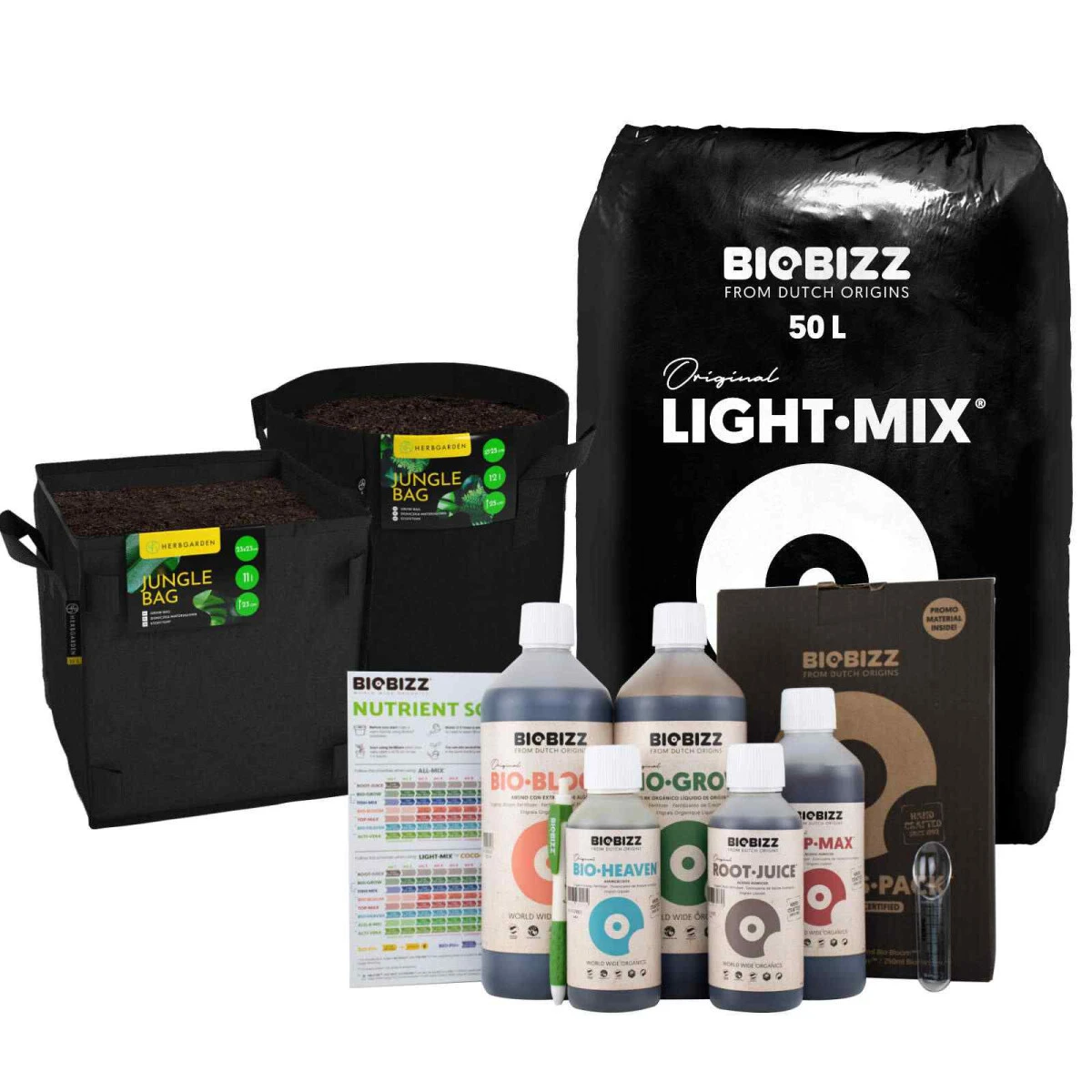 BioBizz Light-Mix mit Starters Pack und 4 Herbgarden Stofftöpfe im Bundle.