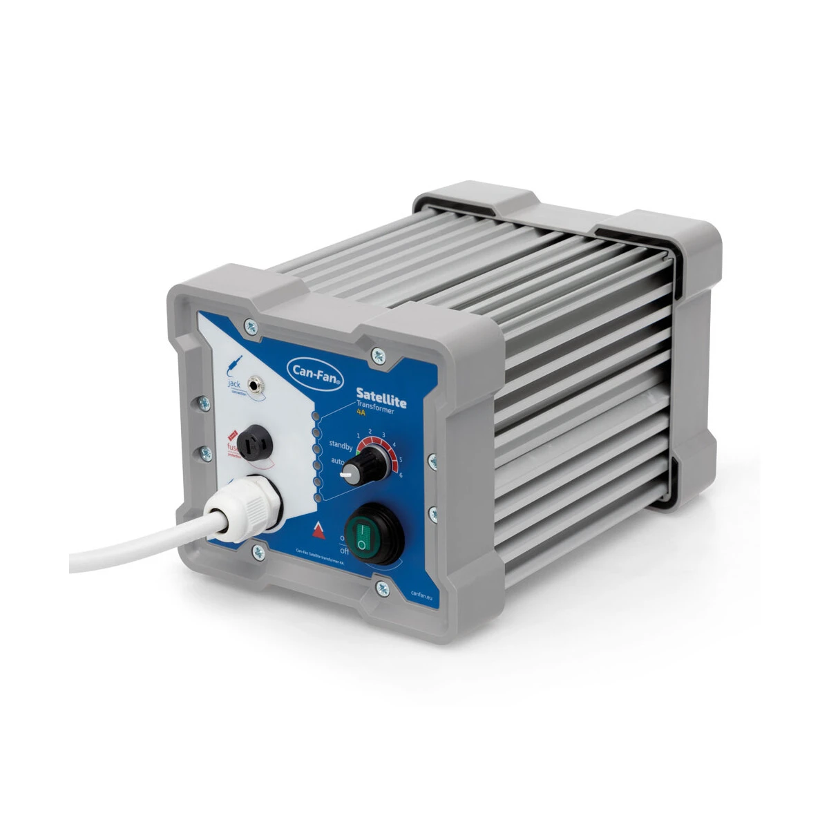 Der Satellite 4 A ist ein 6 Stufentransformator, welcher ohne jegliches Brummen oder anderen Vibrationen zu 100 % kompatibel zu allen AC Can Fan Iso-Max 1-stufig und Max-Fan 1-stufig ist. Dies gibt Dir die Möglichkeit ein AC-Modell geräuscharm wie noch nie zu bekommen. Die 6 Stufen werden dabei über die entsprechend am Gerät befindlichen 6 LEDs angezeigt. Das Anschließen erfolgt kinderleicht über den entsprechenden Anschluss am Satellite sowie den Stecker des Rohrventilators und ist somit Plug and Play. Durch den am Transformator zusätzlich befindlichen Drehregler, lassen sich manuelle Geschwindigkeitseinstellungen sowie Auto- und Stand-By Einstellung wählen. Bei der manuellen Einstellung der Geschwindigkeit arbeitet dein Iso- oder Max-Fan nur mit der von Dir gewählten Leistung. Damit hast Du die volle Kontrolle über Deinen Rohrventilator. Zusätzlich bietet Dir die Ein / Aus Schalttaste die Möglichkeit, ohne die Einstellungen verändern zu müssen, Deinen Rohrventilator abzuschalten und bei Bedarf wieder einzuschalten.