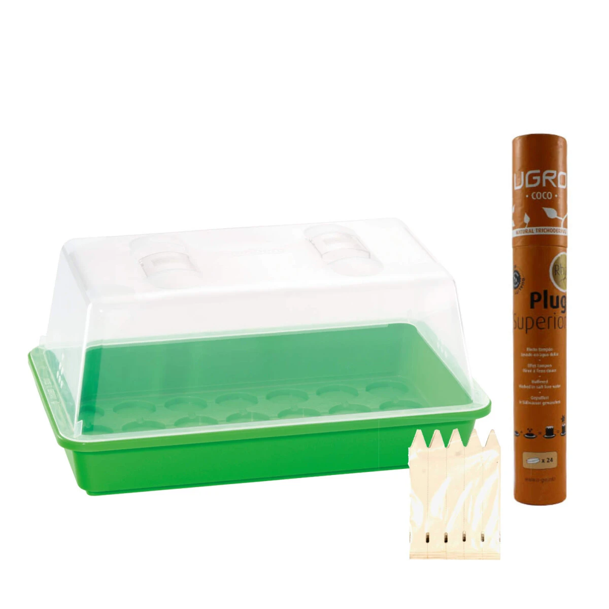 Das Zimmergewächshaus M von Romberg bietet einen effektiven Schutz und ein Klima, was für junge Pflanzen, Stecklinge und Sämlinge hervorragend geeignet ist. Die Quelltöpfchen von Ugro passen ideal in das Gewächshaus und eigenen sich bestens für die Anzucht und Keimung von unterschiedlichsten Samen und Stecklingen und dank der Stecketiketten verliert man nicht mehr die Übersicht.