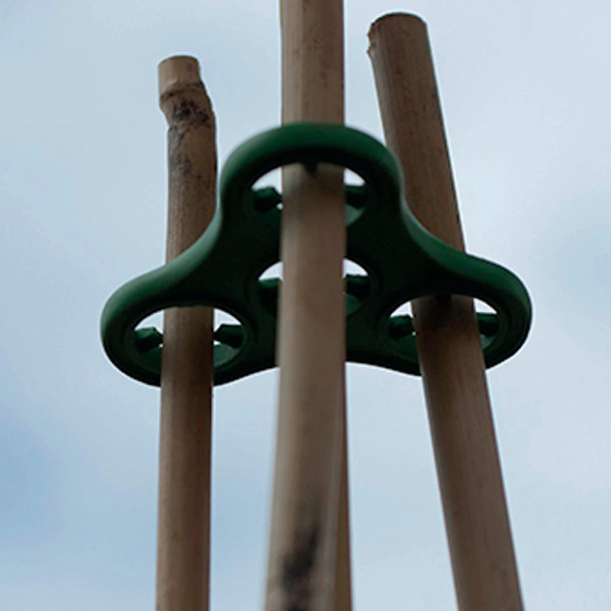Das einzigartige Stockhalterungssystem besteht aus 3 Verankerungsschlitze die um den Innentopf herum platziert sind. Mit der aus dem Innentopf heraus zu drückenden Rohrgriffkappe und beispielsweise Bambusrohr (nicht im Lieferumfang enthalten) kann dann eine stabile, starre und Windfeste Konstruktion geschaffen werden.
