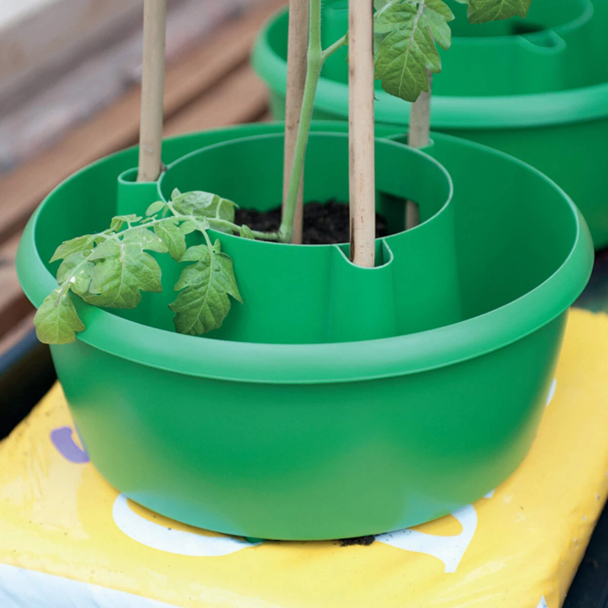 Die neuen und einzigartigen Garland Plant Halos Töpfe bietet eine „All-in-One“-Lösung für die Bewässerung und Unterstützung von beliebten Kulturpflanzen wie Tomaten, Paprika und Bohnen und viele mehr.