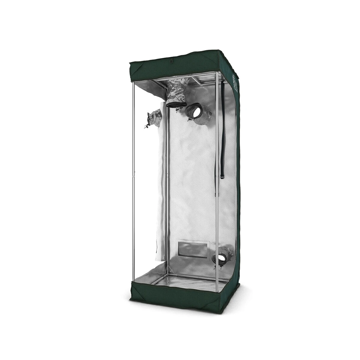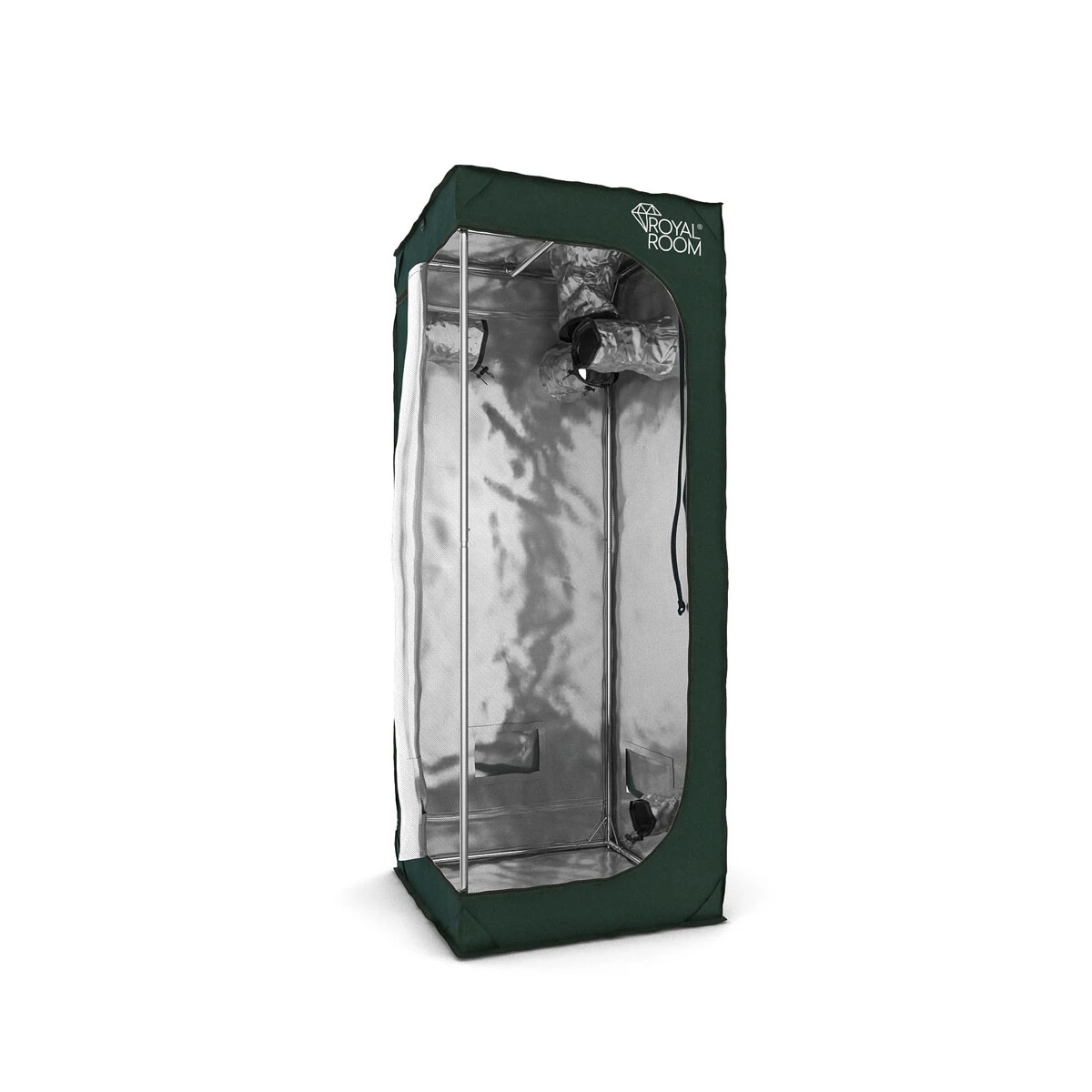 Die schützende Außenhaut bildet ein Klassiker in unserem Sortiment. Die RoyalRoom C60 ist eine sehr solide Growbox mit strapazierfähigen Stoff und reflektierender Innenbeschichtung. Ihr stabiles Gerüst ist sogar mit Verbindern aus Stahlrohr versehen. Viele Service- und Lüftungsöffnungen lassen jede Menge Einsatz- und Aufbaumöglichkeiten zu und auch sonst bietet die Box alles was man braucht. Ein separater und wasserdichter Einlegeboden, Black-Out-Zipper und aufklappbare Lüftungsschlitze mit Insektenschutzgitter sind selbstverständlich.