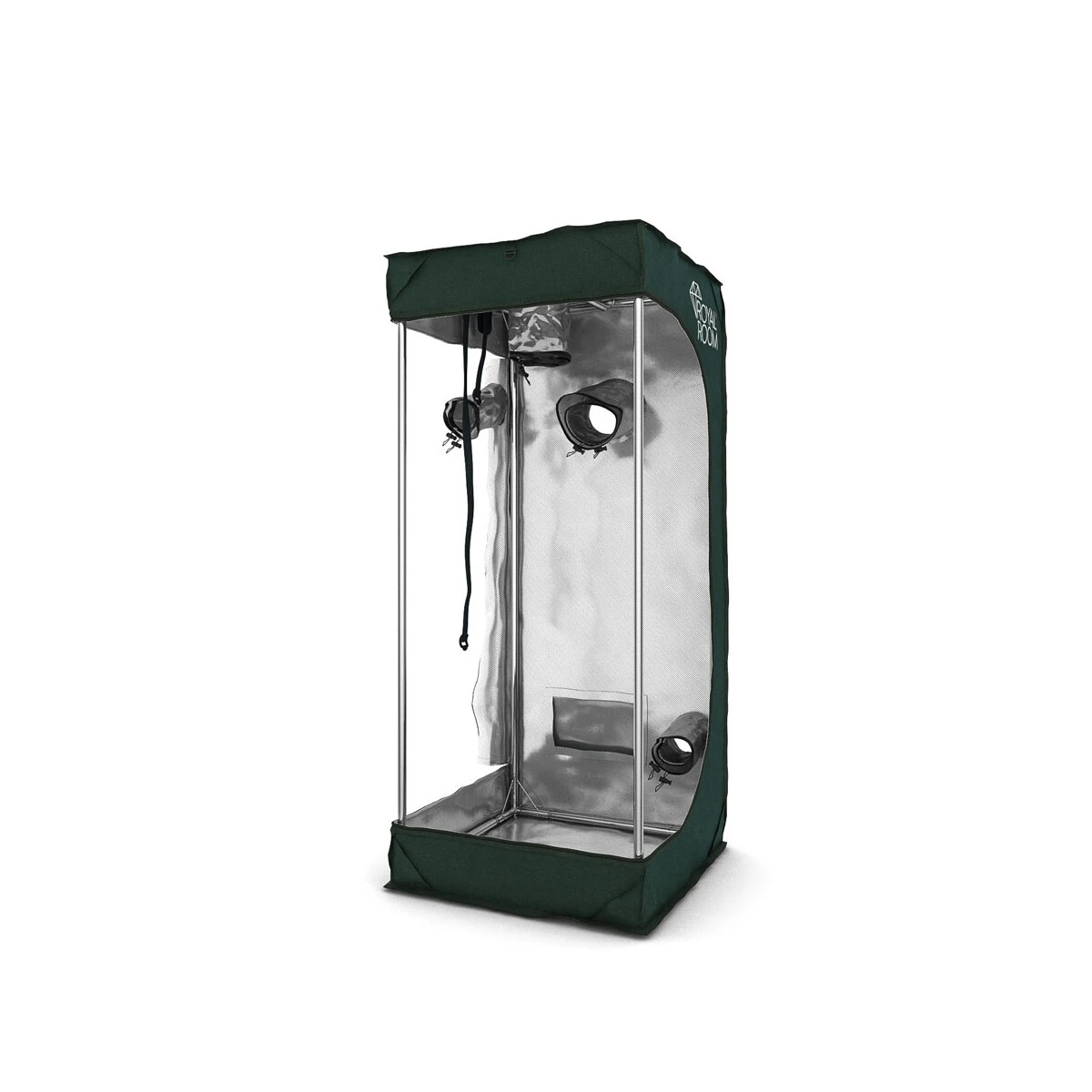 Mit dem Royal-Room C50 Grow-Zelt bekommst du die ideale Growbox für die Sanlight Q1W. Mit der Grundfläche von 50 x 50 cm ist die Box so geschnitten, dass die Ausleuchtungsfläche der LED mehr als perfekt genutzt wird und auch Kanten und Ecken des Zeltes noch ausreichend Licht erreicht. Der Mylar 600D-Stoff ist mit einer silber-reflektierende Innenbeschichtung versehen, die 95% des einfallenden Lichtes zurückwirft. Jede Menge, mit Doppelbündchen versehene, Öffnungen lassen eine vielseitige Installation von Licht und Lüftung zu und die mit Klappen und Gitternetz versehenen Lüftungsöffnungen lassen einen ständigen Nachfluss unverbrauchter Luft zu. Ein Stahlgerüst mit Verbindern aus Stahl und hochwertige und lichtdichte Reißverschlüsse runden das Bild ab.