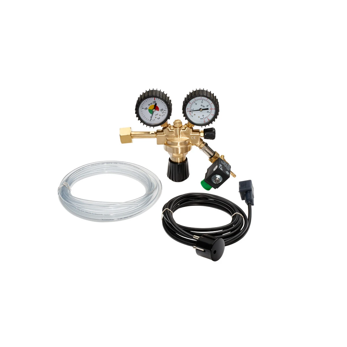 Mit dieser CO2-Armatur kannst Du CO2 aus einer Flasche optimal dosiert in Deine Raumluft abgeben um den CO2-Gehalt zu erhöhen. Das Set ist fertig montiert und enthält alle Komponenten, welche Du neben dem Controller, ggf. CO2-Sensor und einer CO2-Flasche benötigst. Am Druckminderer läßt sich der Durchfluss pro Minute einstellen. Zudem kann er über die entsprechende Anzeige abgelesen werden. Zusätzlich wird dir der Restdruck Deiner CO2-Flasche angezeigt.