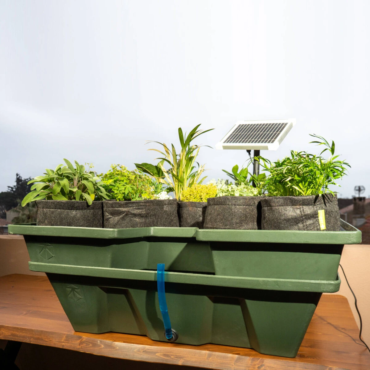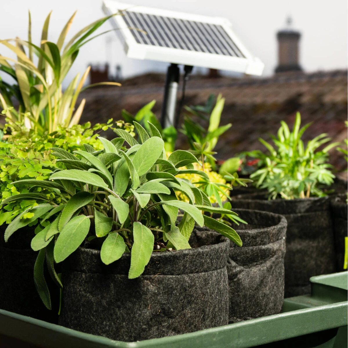 Das Terra Aquatica Ebb&Grow-System ist in 2 Varianten erhältlich. Die herkömmliche Lösung besteht aus einer Pumpe mit einem normalen Netzstecker-Anschluss. Das System wird an die Steckdose angeschlossen und es läuft. Die zweite Variante ist mit einer Solar-Paneele als Stromquelle versehen. So wird das Ebb&Grow-System bedeutend autonomer und kann praktisch überall eingesetzt werden, wo es der Platz und das Licht zulassen.