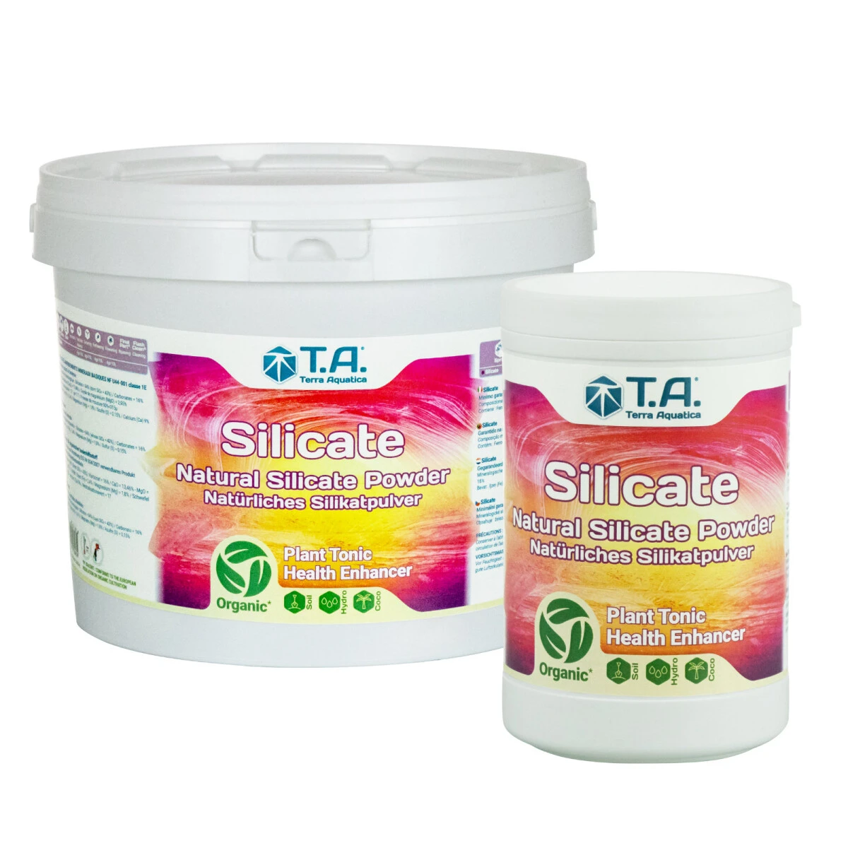 Silicate verbessert die Wasserspeicherfähigkeit des Bodens und die Verfügbarkeit von Nährstoffen für die Pflanzen. Es ist selbst ph-neutral, kann aber den ph-Wert und den EC-Wert in der Nährstofflösung stabilisieren. Das verbessert die Nährstoffaufnahme und verringert gleichzeitig den Wachstumsstress. Zusätzlich bietet Terra Aquatica Silicate mehr als 60 Mineralien, die zur Stabilisierung der Bodenqualität und der Ernährung der Pflanzen dienen. Zusätzlich bietet das Produkt der Pflanze Calcium an, was die Nährstoffversorgung zusätzlich optimiert, den Ertrag anhebt und die Qualität des Erntegutes verbessert.